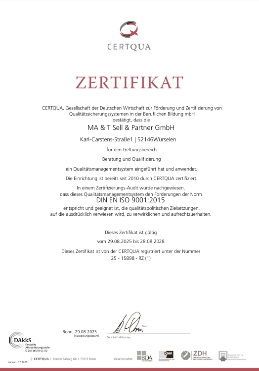 Die Prüfung wurde erneut von der CERTQUA GmbH, einer anerkannten Zertifizierungsgesellschaft, durchgeführt.