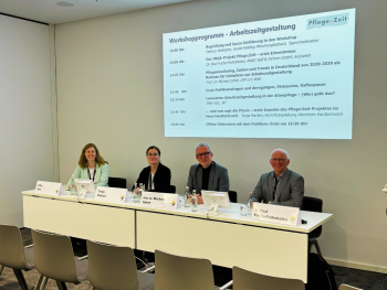 In den Beiträgen von Silke Völz (IAT- Institut für Arbeit und Technik, Gelsenkirchen) und Tanja Manten (Einrichtungsleitung Altenheim Hardterbroich, Sozila-Holding der Stadt Mönchengladbach), wurde dann verdeutlicht, mit welchen Themen und welcher Vorgehensweise im Pflege:Zeit-Projekt konkrete Innovationen in der Arbeitszeitgestaltung gemeinsam mit den Beschäftigten angegangen werden.