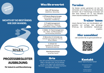 In dieser neuen Weiterbildung lernen Nachwuchskräfte, wie sie Veränderungsprozesse effizient gestalten, Konflikte frühzeitig erkennen und betriebliche Kräfte mobilisieren können.